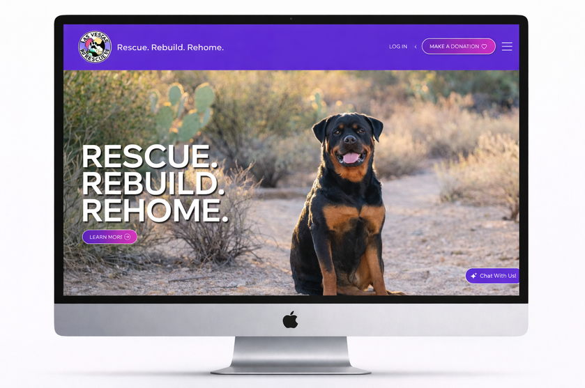 At the time, they lacked a strong, cohesive digital foundation. There was no fully developed website to guide potential adopters, donors, or supporters, and no centralized platform to clearly communicate their mission, showcase their dogs, or build credibility with the public. For a rescue preparing to launch into the Las Vegas community, this created a gap between their vision and how they were being perceived.